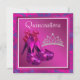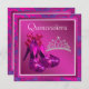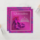 Elegant hot pink high heel shoes and tiara fuchsia Quinceanera invitation template. This beautiful purple and fuchsia birthday party invitation is easily customised for your event by simply choosing the "Customise it!" button to begin adding your event details, font style, font size & colour, and wording. Please note - all of the stickers, cards and invitation designs you will find on Zazzle are printed graphics with no actual jewels, bows, raised, embossed, or added parts or pieces.