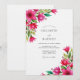 This design features a lively display of vibrant fuchsia blossoms and lush green foliage. The artistic floral arrangement evokes a whimsical and enchanting mood, perfect for a romantic occasion. The color palette is dominated by bold pinks and rich greens.
