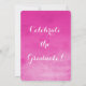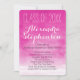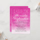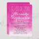 Vibrant, exciting fuchsia bright pink watercolor background with white vertical text and script graduation party invitations. Beautiful artistic representation of feminine girly expressive and artistic colours.