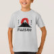 The t-shirt feels and looks great quality, a good thick cotton. It will be a little big for my son, but that means he will be able to wear it and not out grow it too soon. The print was as described on the order when personalised. True size, shape and colour T-shirt- thanks.