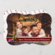 A modern photo Christmas card design with your family photo filling the card face. Fun elf decor with dark red text band for your words.