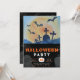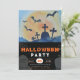 The top half of this invitation immerses you in the enchanting glow of a full moon, surrounded by the silhouettes of bats and graves adorned with crosses. This hauntingly beautiful scene captures the essence of Halloween, promising an evening of mystical wonder.