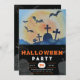Full Moon, Bats and Graveyard Black Halloween Invitation