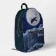 A faux suede background in dark blue and black represents the night sky and serves as the backdrop for a full moon and stars peeking out from behind some clouds. A jet black raven soars across the sky and completes this dark Gothic inspired design.