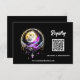 A beautiful white 3D looking full moon with ornate detail on it is framed by a grey cloud circle that has diamond and circle wiccan symbols hanging off it. The generative content graphic appears to sparkle against a black background that may be changed to any colour of your choice. This chic and stylish illustration is ideal for a starry night quinceanera; a moon and stars special birthday party; a celestial engagement; an over the moon wedding; a gypsy fortune teller birthday theme party or wiccan upmarket event. Replace the QR code with your own.