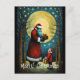 Elegant illustration Christmas holiday design featuring a full moon Santa Claus giving a gift to the kid.