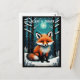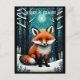 Full Moon Snowy Night Forest Cute Fox Christmas Postcard