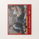 Full Photo Merry Christmas with Foliage jigsaw puzzle. A full custom photo and white foliage and merry Christmas text on a red background. Add your photo and year.