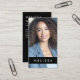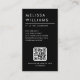 Black or any colour, vertical business cards with you name and photo on the front and name, QR code, name, title and contact information on the back.