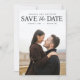 Full Photo Modern Save the Date with plaid back design with monogram and information on back.
