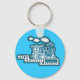 "Full steam ahead" sky blue train graphic keychain