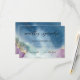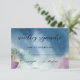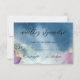 Elegant celestial wedding RSVP card with all text sections customisable. Text in French with the ability to change as needed. This same RSVP card is also available in English. Design with an exquisite watercolor background with watercolor stains in an artistic blend of purple, magenta, fuchsia, teal, turquoise, aqua, blue, and navy blue hues with gold elements. Part of our "Mystic Garden" collection with a variety of coordinating products available.
