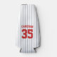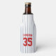 Baseball jersey stripes style bottle cooler with colours that are fully customisable. To change the background colour, click customise, select the "Background:Images and Text" layer and change the background colour. To change the stripes colour, click customise, select the "Background:Images and Text" layer, select "ThinStripes1" element and change the fill colour. To change colour of text, select "Front" layer, select the text elements and change their colour. Perfect gift for the baseball fan.