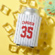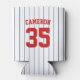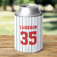 Baseball jersey stripes style can cooler with colours that are fully customisable. To change the background colour, click customise, select the "Background:Images and Text" layer and change the background colour. To change the stripes colour, click customise, select the "Background:Images and Text" layer, select "ThinStripes1" element and change the fill colour. To change colour of text, select each "Front" and "Back" layer, select the text elements and change their colour. Perfect gift for the baseball fan.