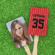 Keep cool and show your support for your baseball player at a game, graduation or any event with this photo hand fan featuring a baseball jersey stripes pattern on the front with colours that are fully customisable (To change the stripes colour, click customise, select "ThinStripes1" layer and change the fill colour. To change background colour, select it to change). On the back you can add your photo.