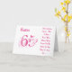 A white background featuring pink text, on this 65th birthday greeting for a sister. My Funny Mind Greetings.
