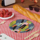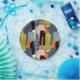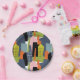 A fun and colourful abstract cityscape featuring buildings, city grids, houses, apartments. Fun and funky tableware perfect for a housewarming , new home, first home, or moving out party.
