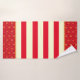 ROARING Bath Towel Set. Fun, bold circle pattern on Red and buttery champagne yellow backgrounds.