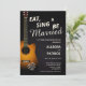 A fun, informal personalised wedding invitation template that features an acoustic guitar with a diamonds heart on it and the title "Eat, Sing & Be Married". Inspired by concert posters, it is a good fit for couples who do not like traditional, formal weddings and prefer a more fun and informal celebration. Still black and white, but not stiff. Still have the diamonds, but on a guitar. Is it "like us"? Customise it and see!