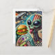 Fun Alien Eating Cheeseburger Encaustic Collage Postcard