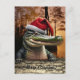 This green alligator in a swamp sports a Santa hat and wishes you a happy holiday.