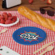 A cool, fun, and colourful paper plate, this design features "Cool" in fun superhero text box on a blue background. Order yours today!
