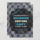 At its core, the invitation showcases a sleek, partially see-through grey bumpy bubble that provides the perfect backdrop for your event details. Centred on this canvas, the words "Halloween Costume Party" take centre stage in vibrant blue and lime green bubble letters, creating a bold and modern statement. The hosted by information seamlessly matches in matching blue, ensuring a cohesive and captivating design. The rest of the text is elegantly presented in light grey for maximum readability and clarity.