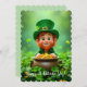 Send greetings with this cute and fun card! It features a fun and cute leprechaun with gold coins in a pot, sitting in shamrocks. Custom text. Fits for St. Patrick's Day, Birthdays and more.