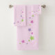 This is cute pink girly towel bathroom set adorned with a star border in a bottom left corner.