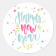 Celebrate the new year with this festive and colourful Happy New Year sticker. This festive holiday sticker features hand lettering, polka dots, stars and stripes doodles.