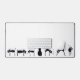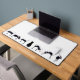 The desk mat is 31 x 15 with a non-slip surface. It features a cartoon-style illustration of a group of silly black cats running across the mat. The cats are all different sizes and shapes, and they are doing all sorts of silly things. The illustrations are black with some red and have playful details. It is sure to bring a smile to your face every time you see it.