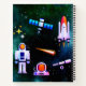 A fun cosmic image of an astronaut, rocket, telescope and space shuttle on a starry space backround where in the middle you can customise it with a name to make it uniquely your own.