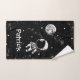 This is a fun bath towel set for a boy who loves space and astronauts. The design features a little astronaut surrounded by stars with the Earth in the background. The name on the towels and facecloth are customisable and would make a great gift for a little boy.