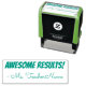 This encouraging rubber stamp design features the encouraging feedback message "AWESOME RESULTS!" and a personalised teacher name. It could be used by a teacher or educator when marking assignments, to acknowledge that the student has done well.
