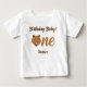 A fun bear first birthday t-shirt for your baby. The baby shirt has the word "One" in large letters with a bear face illustration as the first letter of the word and a brown and white colour scheme. Simply, customise this shirt, add it to your cart, and happy birthday to your wonderful baby!