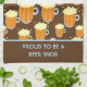This design features lots of beer steins filled with your favourite beverage and lots of foam! The towel is in colours of brown and light blue. As is, the message says "Proud to be a Beer Snob", but you can easily change the message to personalise it for anybody.
