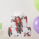 Santa on his motorcycle with his toy pack on his back is speeding to your house, his light on, cutting through the blizzard of snowflakes that form a background for this slightly zany design. Merry Christmas!