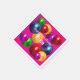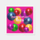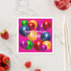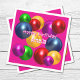 Fun and colourful personalised birthday party napkins with a rainbow of floating balloons on a bright pink background.