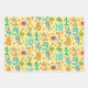 A fun set a three wrapping paper sheets with a bright and colourful birthday party theme. A pattern of cute cartoon numbers on black, white and yellow background colours. Cheerful wrapping paper, which could be fun to use for a childs birthday.