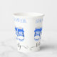 Cute, simple and fun, blue baby booties PAPER CUPS match the Blue Booties and Binky Shower Invitation.
