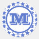 Fun Blue Stars Pattern & Monogram Classic Round Sticker
