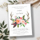FUN BOHO WHITE BLUSH ANTLER FLORAL COUNTRY WEDDING INVITATION