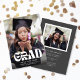 This modern graduation announcement features a vertical full frame photo and retro yet elegant typography on the front. On the back there is another photo with text for a graduation party / open house. This invitation text / photo on the back can also be deleted. All colours in this design are customisable.