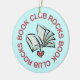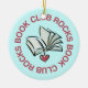 An open book with a heart bookmark and Book Club Rocks quote comes with gold thread hanger.