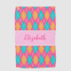 Fun Bright pink preppy argyle custom name ladies Golf Towel
