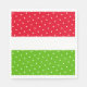 This festive design features a white centre stripe adjoined with bright red top and bright lime green bottom stripes. The top and bottom stripes are filed with dainty white tiled polka dots.