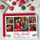 Modern Fun Red Calligraphy Script 5 Photo Family Photo Collage Feliz Navidad Christmas Holiday Card includes Watercolor Christmas Holly Berries