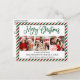 Modern Fun Calligraphy Script Merry Christmas 3 Photo Holiday Postcard - Green and Red Candy Cane Glitter Stripes - Green Script