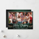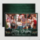 Modern Fun Calligraphy Script 3 Photo Family Photo Collage Merry Christmas Card includes Watercolor Christmas Holly Berries - Rustic Country Green Wood