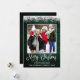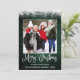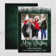Modern Fun Calligraphy Script Merry Christmas Family Photo Holiday Card - Rustic Country Green Wood topped with Snow